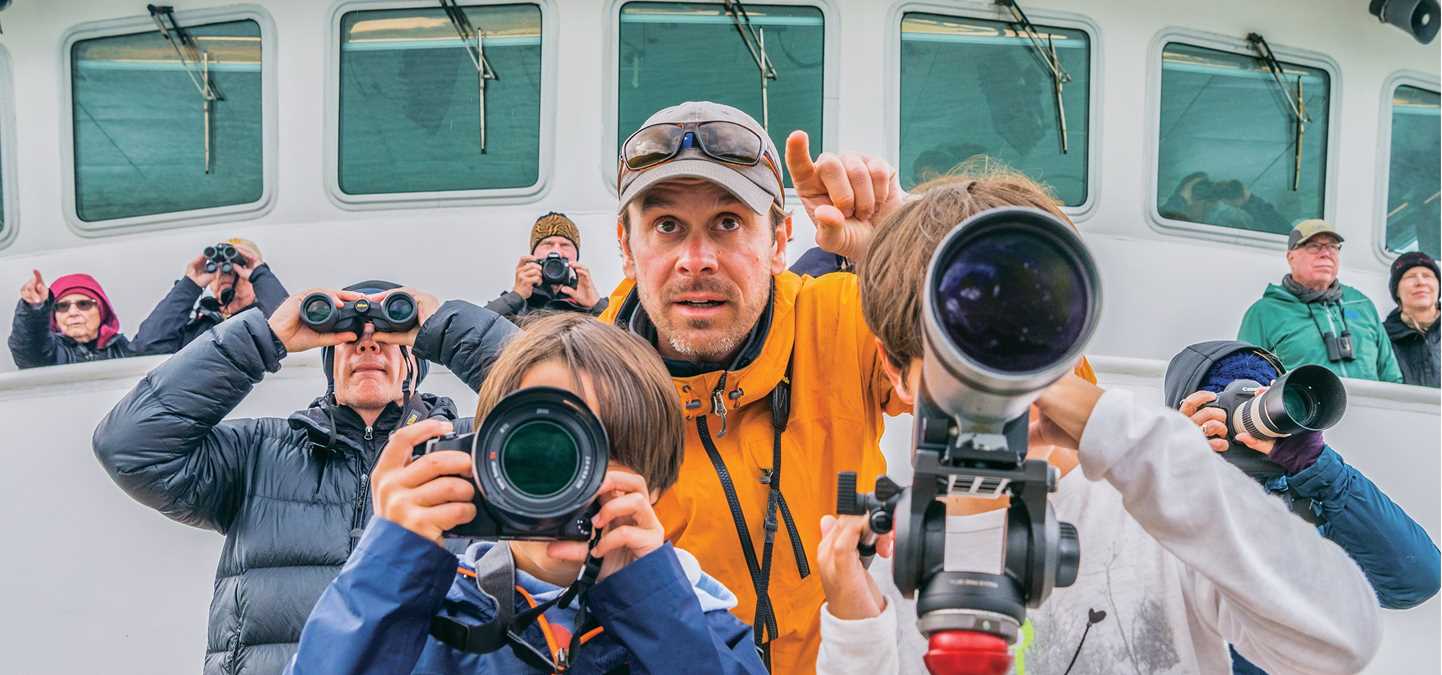 Because these photographers are all trained naturalists, they have a big advantage over an instructor who is merely trained in camera use. They understand the habits of the wildlife guests are trying to photograph, so they can coach them in preparing for the shot of a bear fishing for salmon, an albatross surfing the air currents behind the ship, or a pod of killer whales hunting.