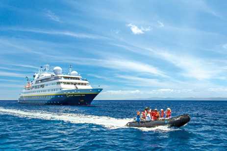Zodiac landing craft, including glass-bottom Zodiac; a fleet of double kayaks; a crow’s nest camera; a hydrophone; underwater video cameras; video microscope; and a Remotely Operated Vehicle (ROV) that can explore the ocean at depths to 1.000 feet. On South Pacific voyages: snorkeling gear for all guests, scuba gear for a number of pre-qualified guests, stand-up paddleboards, and splash-cam.