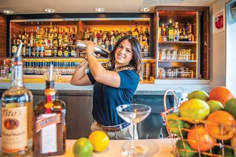 Meals are served in the dining room at a single seating with unassigned tables for an informal atmosphere and easy mingling. Menus feature sustainable choices, local where possible.
