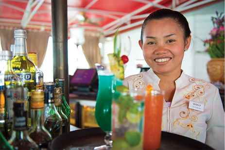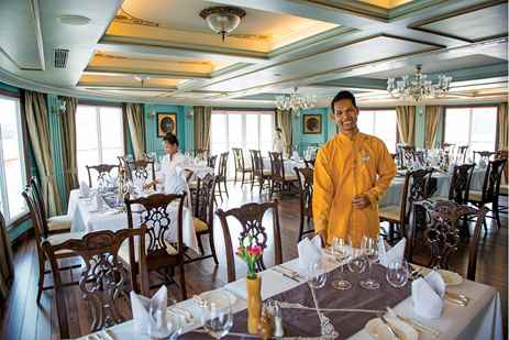 Dining aboard is an extraordinary event daily. Meals are artfully prepared and spotlight Cambodian and Vietnamese cuisine. Continental options are always available. The dining room accommodates all guests for a single seating.