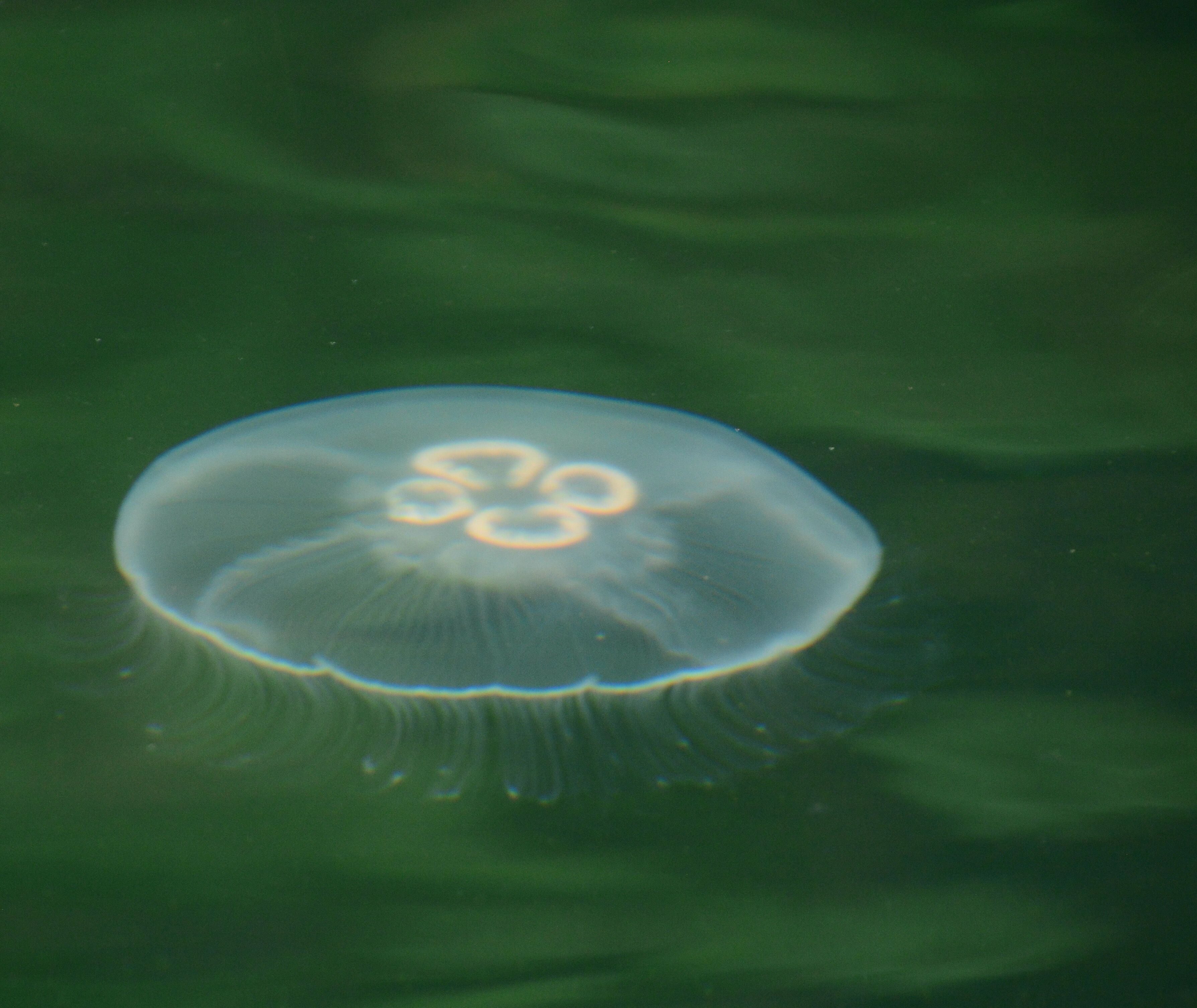 A peaceful anchorage near the head of Aaltanhash Inlet allowed guests of National Geographic Venture to awaken to a smack of moon jellies (Aurelia aurita) roaming the fjord. After an early morning scan of the shoreline and surrounding water, several humpback whales (Megaptera novaeangliae) were spotted gently feeding around the ship. After breakfast, guests departed in Zodiacs to observe the whales and explore the surrounding area. After an eventful morning, guests returned to the ship for lunch before turning their attention to the terrestrial ecosystems. Naturalists guided excursions throughout the salt marsh and intertidal regions with a small group attempting to penetrate the thick undergrowth in search of an inland lake. Fresh signs of recent bear activity were found throughout the area: bedding locations, fish remains, and a rare glimpse at a perennial bear trail. After returning to the ship, National Geographic Venture departed for a cruise along the shore of Princess Royal Island and a brief search for bears before dropping anchor south of Hartley Bay for the evening.