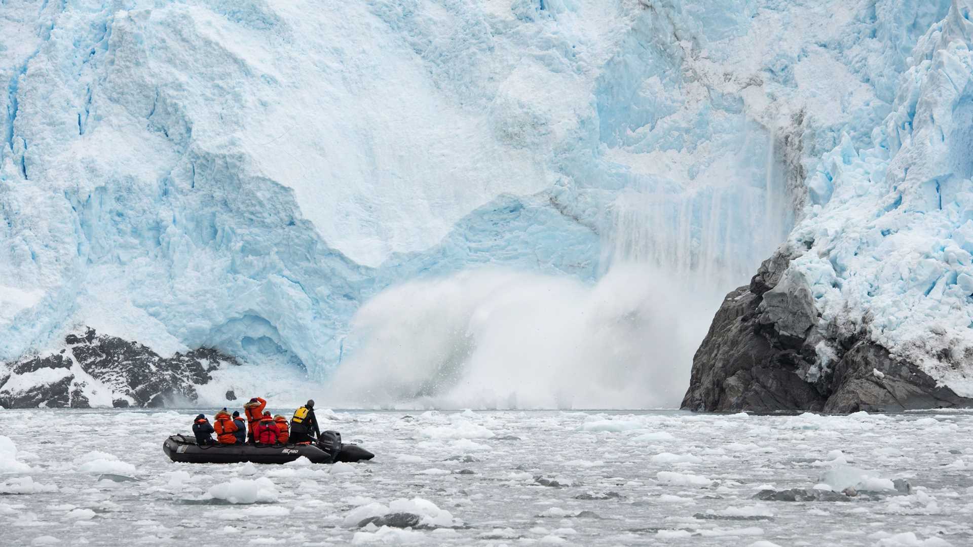 After breakfast, we had our Zodiac briefing and immediately proceeded to the mudroom for our first cruise. The Zodiac fleet headed to the Hyatt Glacier, which provided us with a great show as the glacier calved numerous times into the water. The morning continued on a wonderful note as the head of a leopard seal poked out from the brash ice between the glacier and us.