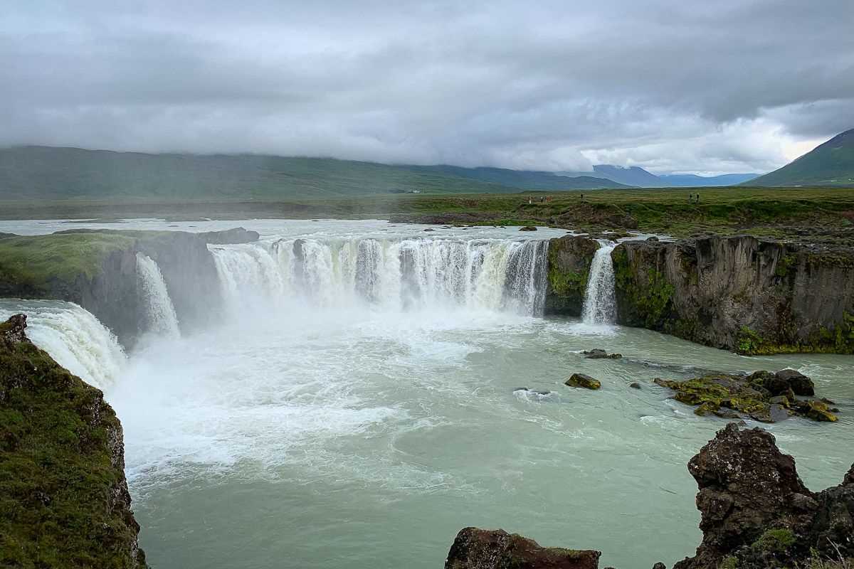 We walked by the powerful waterfalls of Godafoss (“Of the gods”), visited fields of bubbling mud and sulfurous steam coming out of the ground, and meandered through foothills of recently solidified lava.