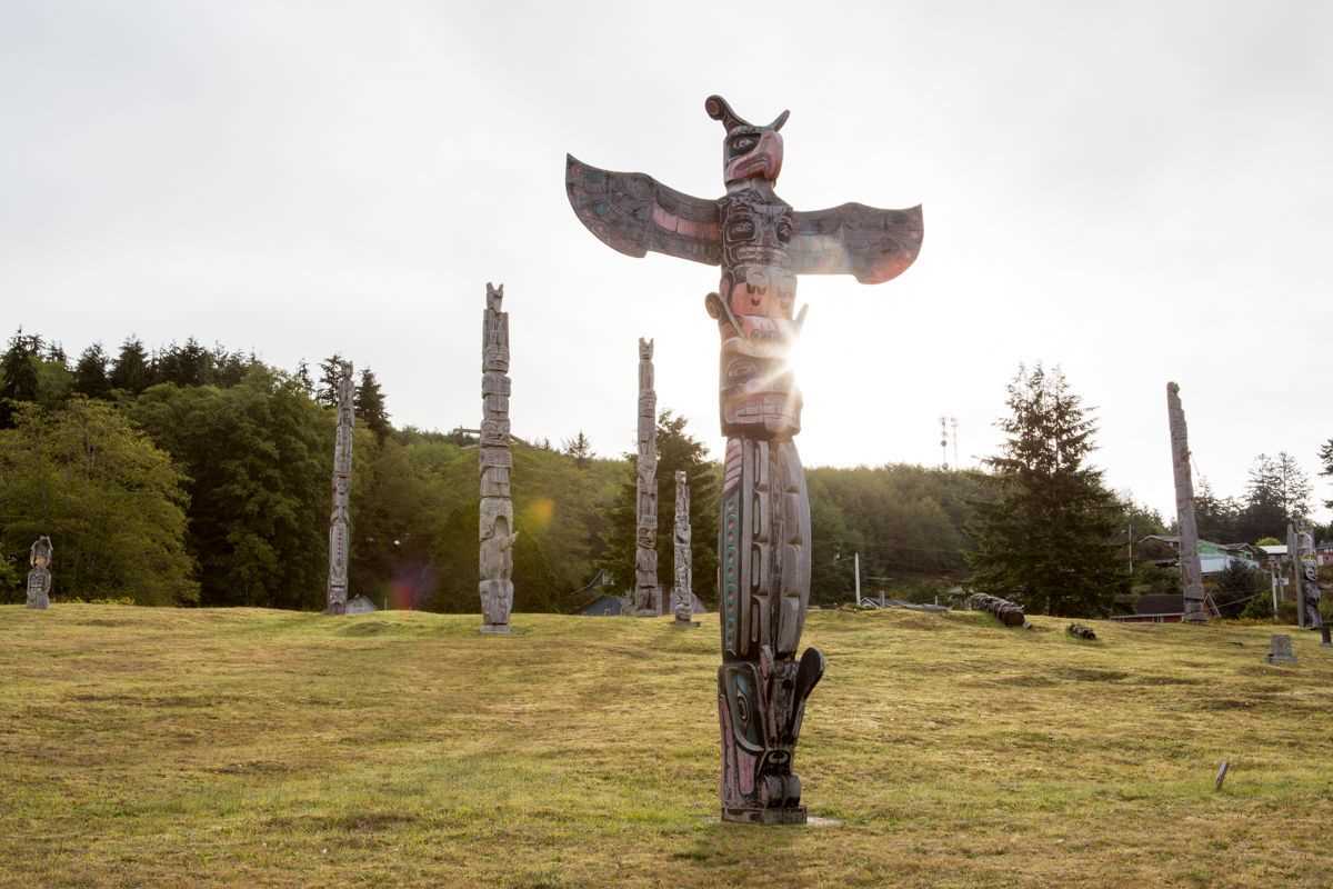 Our expedition in Alert Bay, the cultural and artistic home of the traditional Kwakwaka’wakw people started with a beautiful sunrise over the surrounding islands. After breakfast, we visited the ‘Namgis Burial Ground, a cemetery filled with colorful totem poles that mark the gravesites of generations of Kwakwaka’wakw Chiefs and family leaders. We then took a scenic stroll along the waterfront to visit the U’Mista Cultural Center. Our two guides provided in-depth explanation of cultural dances and the traditional carved, painted masks (on display) that have been worn by performers for decades. This tour was the perfect introduction for our next excursion – a special privilege to witness the Kwakwaka’wakw dances in their local Big House.