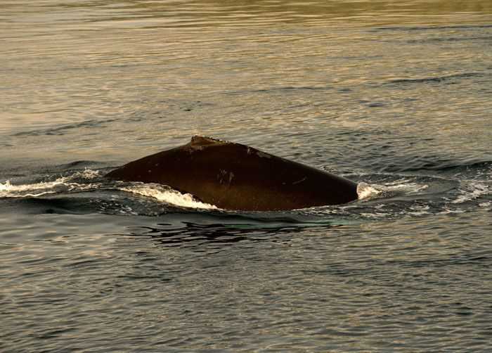 As the sun rose in a partly cloudy sky, our captain made a sharp right turn and entered the waters of Black Fish Sound. Wildlife was all around us, and we spent the morning watching. A group of humpback whales