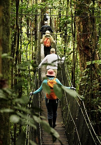 We reached a suspension bridge that is approximately a quarter of a mile in length. It allowed us to walk in the middle strata of the rain forest while feeling the adrenaline of being above the ground. We walked back to the catamarans, crossed the lagoon to then board the skiffs who took us to the ship.