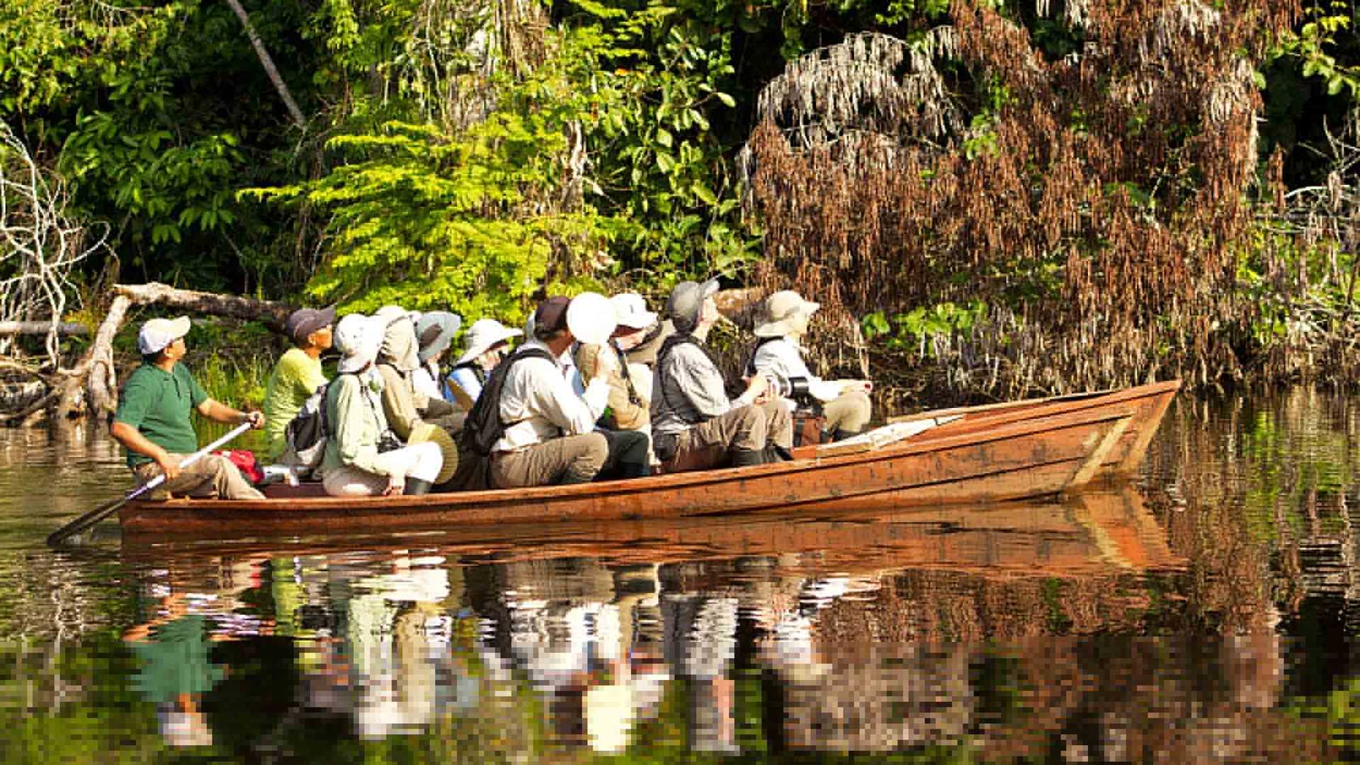 Today, on the second full day of our expedition on the remarkably bio-diverse Amazonia, we had an early visit to the Amazon Natural Park. In this private owned reserve, we crossed a small lagoon on catamarans, then walked to arrive to a long suspension bridge. We had the joy to and listen to our expert Delfin II naturalists talking about several plant species and about some fascinating aspects of the ecology of the rainforest of the Neotropics.