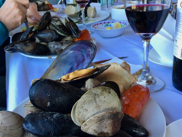After a bit of a frolic on the beach, it was back to the buses and on to lunch. This time, the second bus spotted the pudu, and the universe was once again in balance! At the restaurant, we found pisco sours and small eats to prepare us for a tour of the kitchen. The kitchen, outside and behind the restaurant, was a hole in the ground filled with hot rocks mussels, clams, sausages, beef, and potato cakes—a special Chiloé meal called Curanto. It was excellent, and both red and white wine pair great with it!
