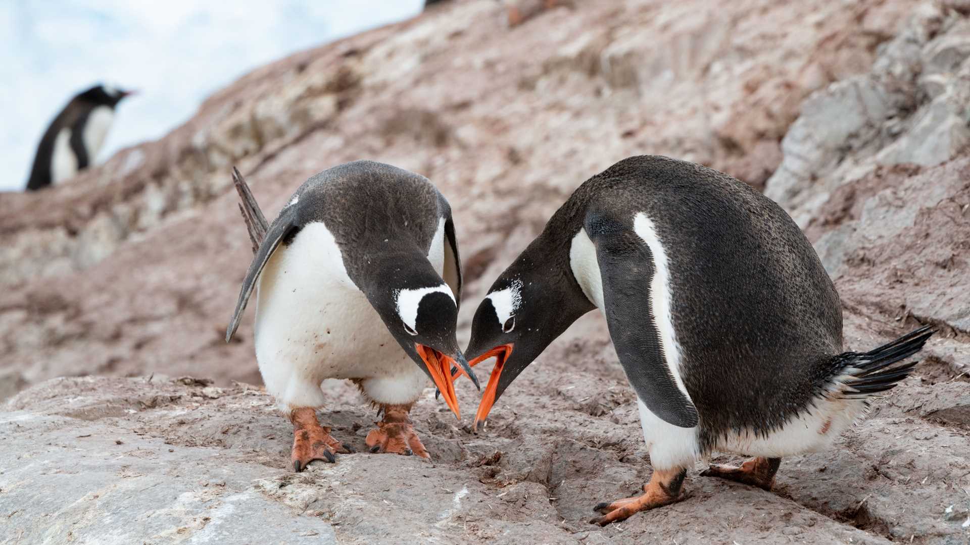 While some adults were busy caring for the young or incubating eggs, others engaged in flirtatious dances of courtship bowing.