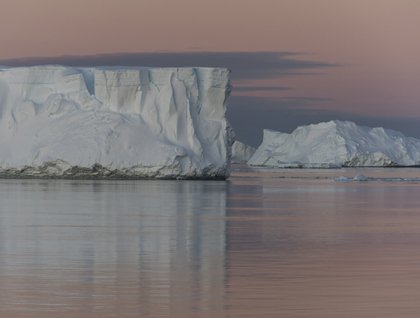 Just after midnight the National Geographic Orion was continuing its steady cruise through a massive field of very large tabular icebergs in Antarctic Sound just off the western tip of the Antarctic Peninsula. Our sturdy expedition ship had been traversing through this extensive array of ice for over two hours, as the sun slowly dipped below the horizon, flooding the scene with beautiful light. The scene was almost surreal, with golden light illuminating the ice, and spectacular pastels in the sky behind!
