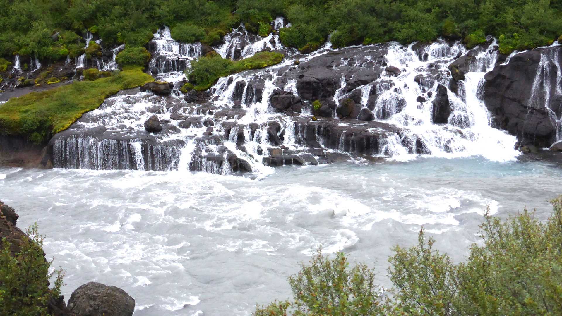The lushness of the landscape could escape no one’s attention. Nor could we miss the occasional steam-belching stream here in the land where magma is not far below our feet. It is hard to describe the cascades of the many waterfalls. Like clouds, each is different. Each is unique.  At Hraunfoss the layers of basalt seem to leak, for no above ground stream is visible and yet volumes stream to the river below.  Barnafoss tumbles beneath a basalt bridge and Glanni roars from a tranquil pool where red-throated loons sedately fed.