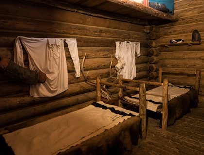 We awakened aboard National Geographic Sea Bird on approach to the dock in Astoria, which we would use as our springboard for the day’s activities. It had begun raining in the night, however there was a bit of clearing during sunrise, and the eastern sky glowed orange and pink and yellow through the streaks of clouds. The rain returned, a propos for our visit to Fort Clatsop, where the Corps of Discovery spent a very damp and cold winter of 1805-06. After a brief visit and orientation in the museum, we had the opportunity to visit a replica of the fort. There were several humorous comments comparing their bunks with the cabins onboard. After a walk through the surrounding forest among red alders, Douglas firs, and Sitka spruce, we boarded the buses, made a brief stop at the Astoria Column, and arrived at the Columbia River Maritime Museum where we spent the rest of the morning learning about the challenges of navigating the confluence of the Columbia River and the Pacific Ocean.