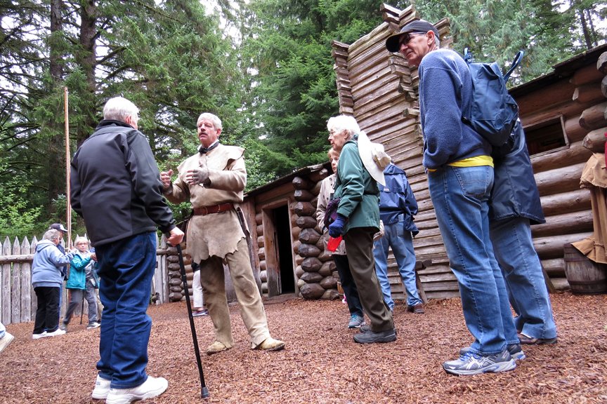 This was the first day of October and the last day of our extraordinary voyage down the Snake and Columbia Rivers. We spent the day in the region around the mouth of the Columbia River, including the seaside town of Astoria. Our morning was rainy and gray—the perfect weather to experience the Pacific Northwest Coast as Lewis and Clark did during their stay here in the winter of 1805 to 1806. Just before breakfast we were treated to the sight and sounds of a humpback whale right off the bow of the ship! California sea lions and a harbor seal were also swimming nearby.
