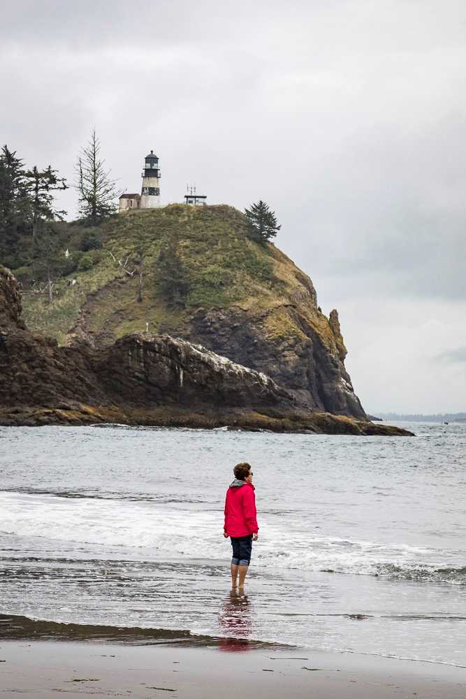 This morning’s adventure begins with a visit to Washington state’s Waikiki Beach, where we enjoy a sandy stroll and views of the rock-rugged coast. The water is calm and a few of us dip our toes in the brine. Unlike the weather at the more famous Waikiki Beach, it is cool here with patches of blue above. We continue to the Lewis and Clark Discovery Center, which has exceptional exhibits addressing many aspects of the expedition. Outside, we look out from the top of the cliff, over the Pacific Ocean and the mouth of the Columbia River. The infamous “bar” is uncharacteristically calm. A few Brandt’s and double-crested cormorants remain on the rocks as their breeding season has just about come to an end. There are plenty of gulls, including one Heermann’s gull, one of the most attractive of the gull species in this region.