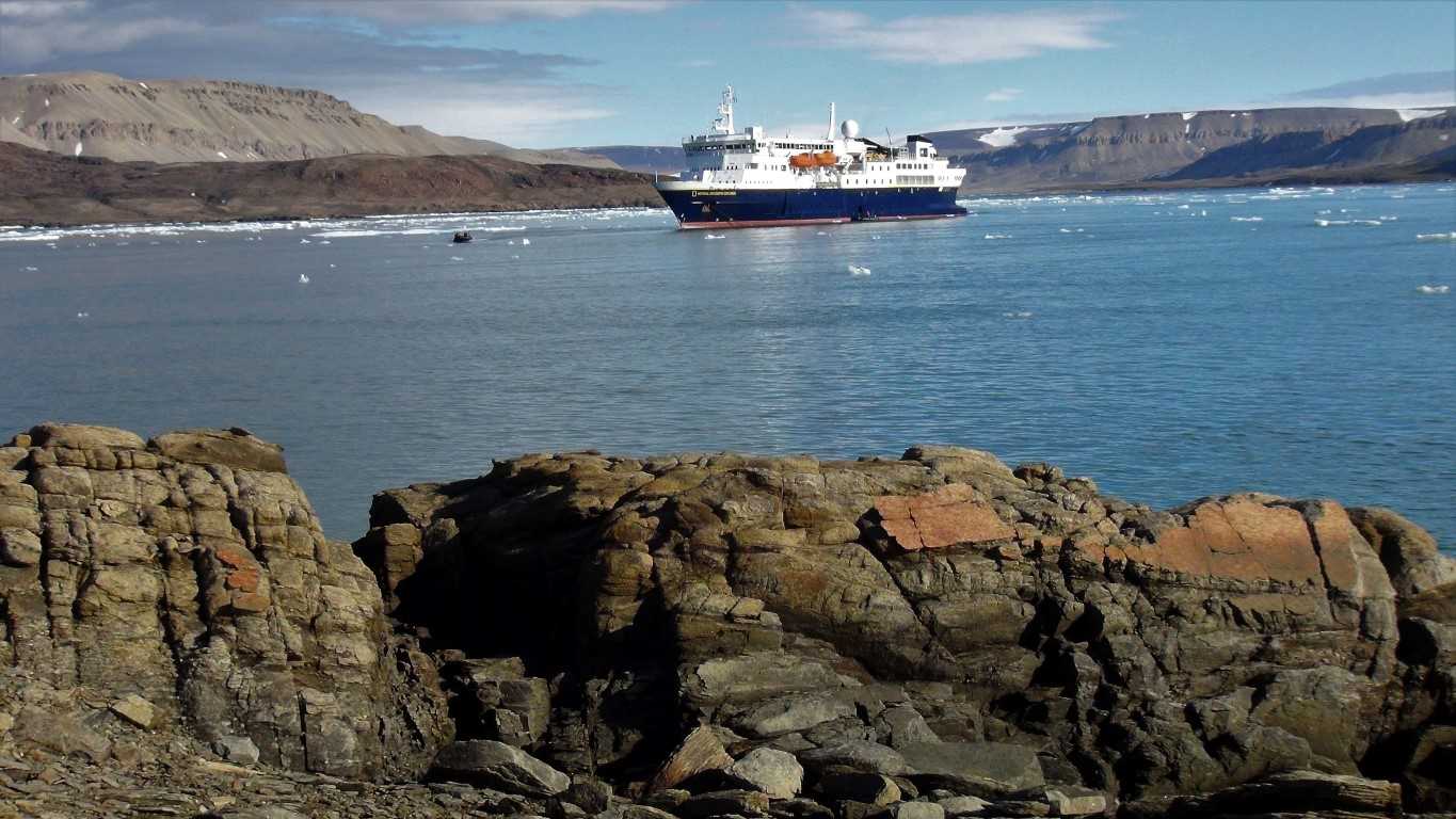 As we ate lunch, we started sailing northward along the eastern shore of Devon Island. Serguei Ponomarenko gave a presentation on how to read the Arctic land – a talk that was scheduled two days earlier but was canceled five minutes prior to its start due to our first polar bear sighting. Archeologist Lynda Gullason, who had the good fortune to lecture without surprise wildlife viewings, spoke about the cultural significance of the Morin Point site and the fact that the site is actively eroding due to ice rafting and of the challenges involved in saving the site.