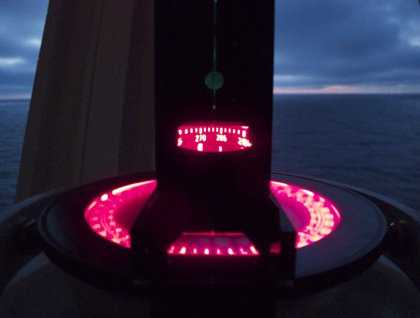 At times during the day poor visibility had us sounding the fog horn, a sign that we had entered the cooler waters of the Malvinas/ Falklands current that are also busy shipping lanes. In the late afternoon, however, the skies cleared to provide brilliant visibility. As dinner drew to a close, a few aficionados of the green flash gathered eagerly on the bow in eager anticipation.