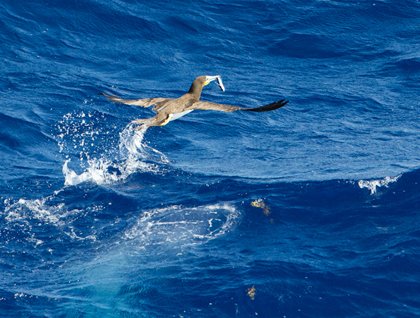 Exuberant in the high winds and seas were also the flying fish, skimming and sailing across the wave crests.  Brown boobies and masked boobies plunged after them using their finely tuned binocular vision and depth perception, while the occasional frigate bird would try to scoop one in flight or steal the catch of a booby.