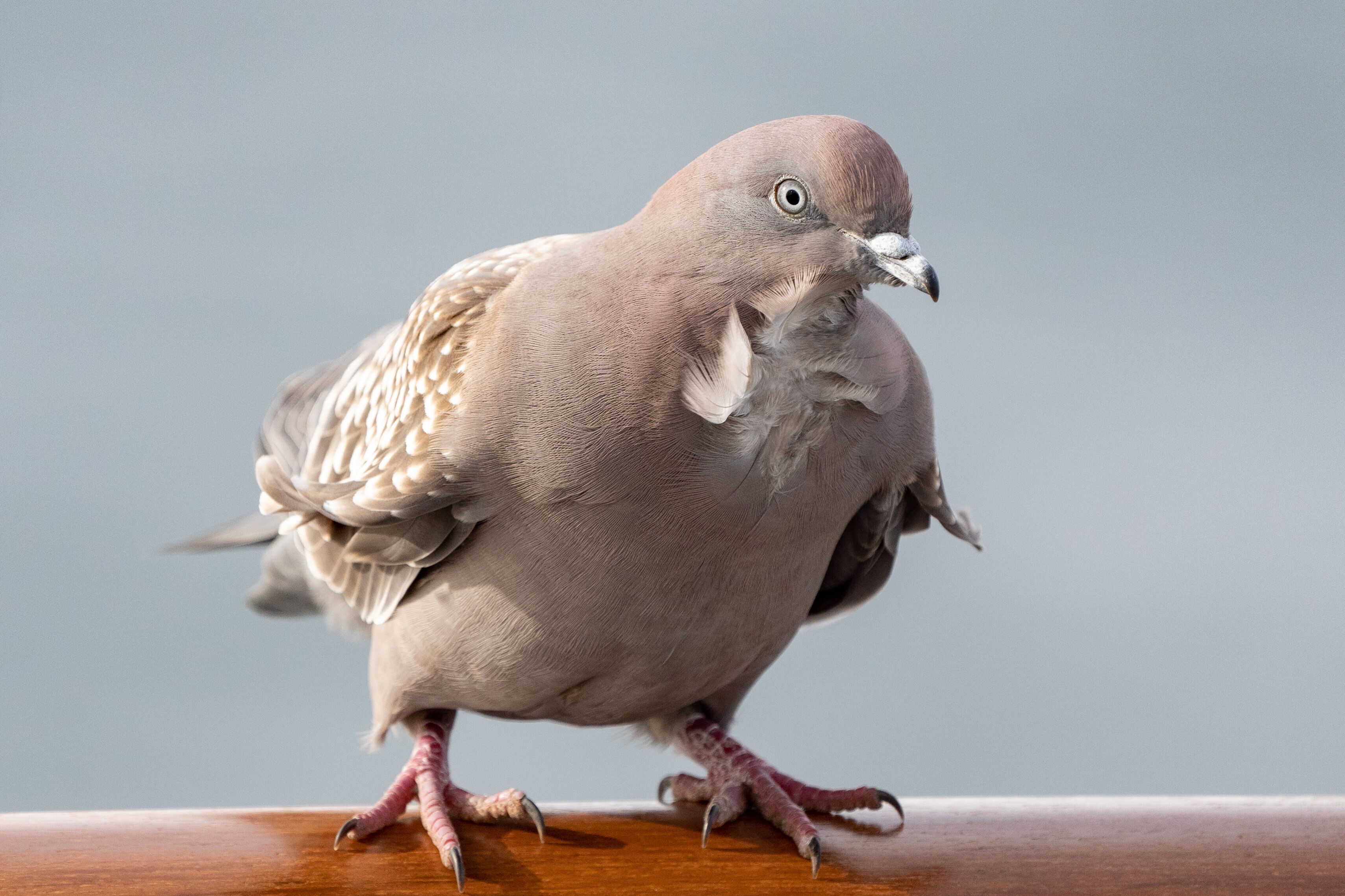 Far from sight of land, a stiff wind greeted us this morning, along with a surprising array of winged land animals that were blown out to sea: hundreds of moths and at least seven birds took refuge on our ship. We spent the day at sea, sailing south and west across the broad Bahia Blanca. We encountered our first penguins of the voyage (Magellanic penguins), and we had some interesting albeit fleeting marine mammal encounters (southern right whale, humpback whale, blue whale, common dolphin, and South American sea lion).
