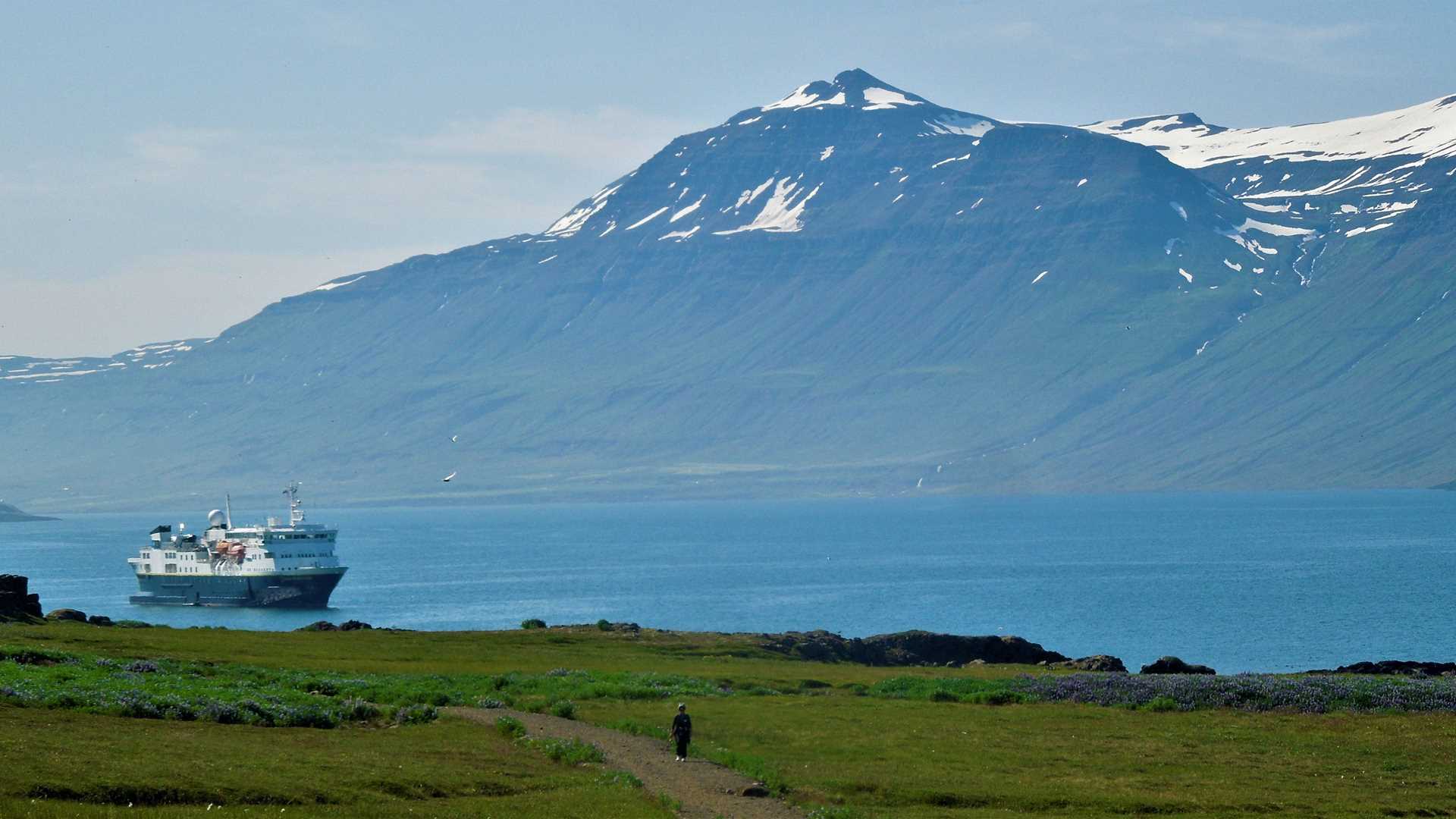 This morning we awoke to calm seas and with the sun shining as bright and happy as it was when we retired last night. Just as breakfast was about to be served the call came from the Bridge to grab cameras and get on deck—a large pod, perhaps two, of orcas had been spotted ahead on the mirror-like sea! And what a rare treat it was. A dozen or so whales, male and female were sporting, spy-hopping, and breaching in a show rarely seen. We stayed with the great black and white creatures, skin sparkling as the strong sun illuminated them, and enjoyed their energetic and play-like behaviour. This was turning into a great story to tell friends and family back home. However, there are more wonders and spectacles to be enjoyed in Iceland so, after well over an hour, the captain gently turned our vessel in the direction of our afternoon destination, Skalanes Nature Reserve.