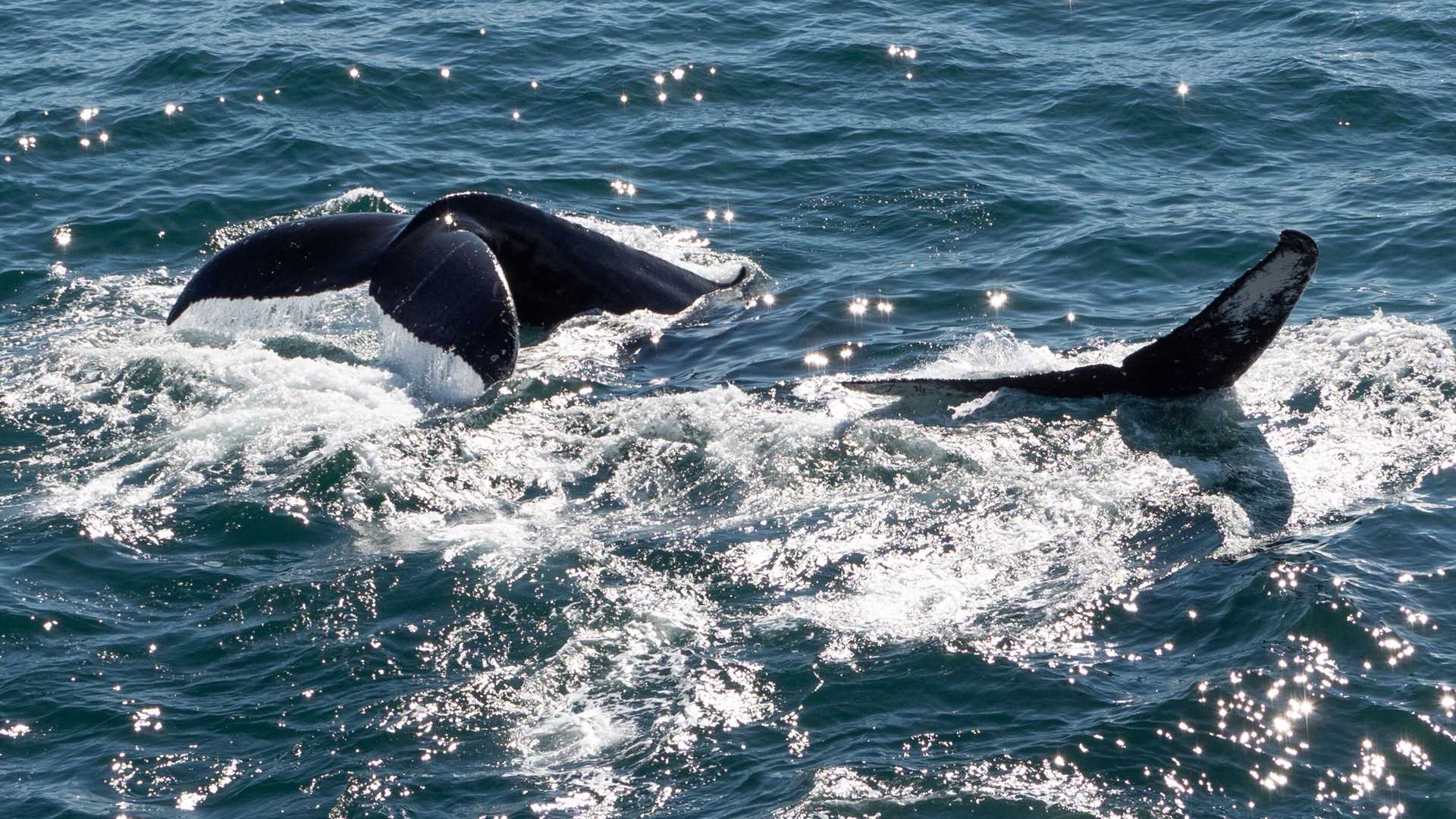 In the afternoon, feeling like the calm seas and beautiful weather were a true gift for the day, we were delighted with another treat – whales! In the distance, we could see numerous humpback whales and one grey whale repeatedly surfacing and diving. Blow, blow, blow. Blow, blow, blow! The whales surfaced in succession, one after the next. Then we found a large number of grey whales feeding and creating mud plumes at the surface of the water. As the ship slowly and carefully edged forward, the whales seem to come closer to see us.