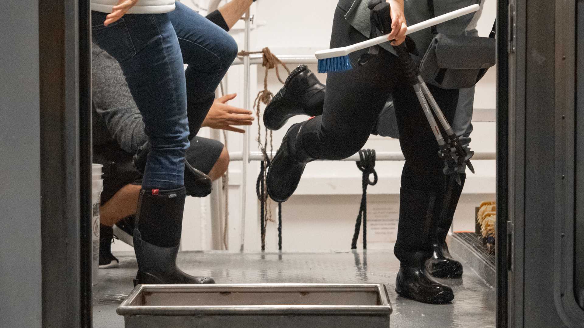 Many efforts have been put forth to protect the island’s flora and fauna, so part of our day has been dedicated to another round of bio security decontamination. Bacteria, microbes, seeds, oh my! These are just a few of the organisms we want to prevent the transfer of, so out came the vacuum cleaners and biological disinfectants again today. Biological consistency is crucial to keeping South Georgia in an ecologically balanced state. That balance was threatened twice already, once with the introduction of reindeer and once with rats. Both populations have been contained, but wouldn’t have been without much effort and money.