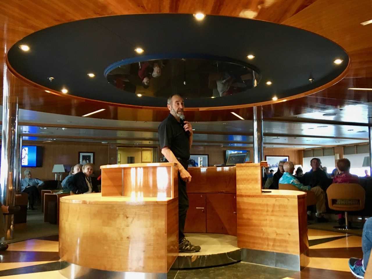 For the next couple of days we will prepare ourselves for South Georgia Island—metaphysically, intellectually, and calorically! Camera and video equipment must be thoroughly cleaned and inspected. Cleaning and inspection can be a metaphysical activity, as it is frequently repeated in times of photographic anticipation seemingly to strengthen the spirit. To this end, the photo team offered the loan of equipment courtesy of B&H Photo and National Geographic photographer Jay Dickman provided tips and mystical advice on the goodness of lighting, separation, the MOMENT and “tack sharp” eyes. In the Lounge there was a series of presentations on pertinent topics: penguins, local geology, exploration of remote, icy places (by Peter Hillary) and Ernest Shackleton’s epic adventure which included the first crossing of mountainous South Georgia Island.