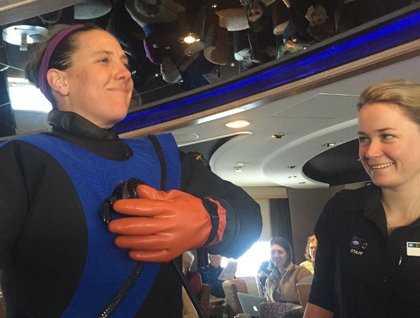 A day at sea is far from dull. It is a time to catch up, a time to relax, and a time to recover. In the morning, guests and staff enjoyed a lecture from National Geographic photographer Massimo Bassano on his photographic assignments throughout the world over the last 20 years. It was nice to step into other places and times as he explains his experiences. Following Massimo, undersea specialist Erin and I revealed the secrets of staying warm beneath the surface. We showed our extensive (and very heavy) equipment for diving and filming in the undersea world. In the afternoon, reviewing our photography fills our time. Photographers Massimo and Ian reviewed our selected images in an intermediary viewing, with comments and critique.
