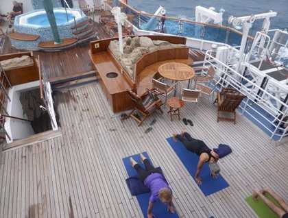 Our sea day encouraged many early risers outdoors to feel the open waters and sense the free flowing breeze that is the lovely invitation of the open sea. Coffee and freshly baked pastries beckoned us to the outdoor café and to wake us slowly after a couple of days snorkeling and, for some still arriving into a new time zone, a very welcome chance to sleep in.
