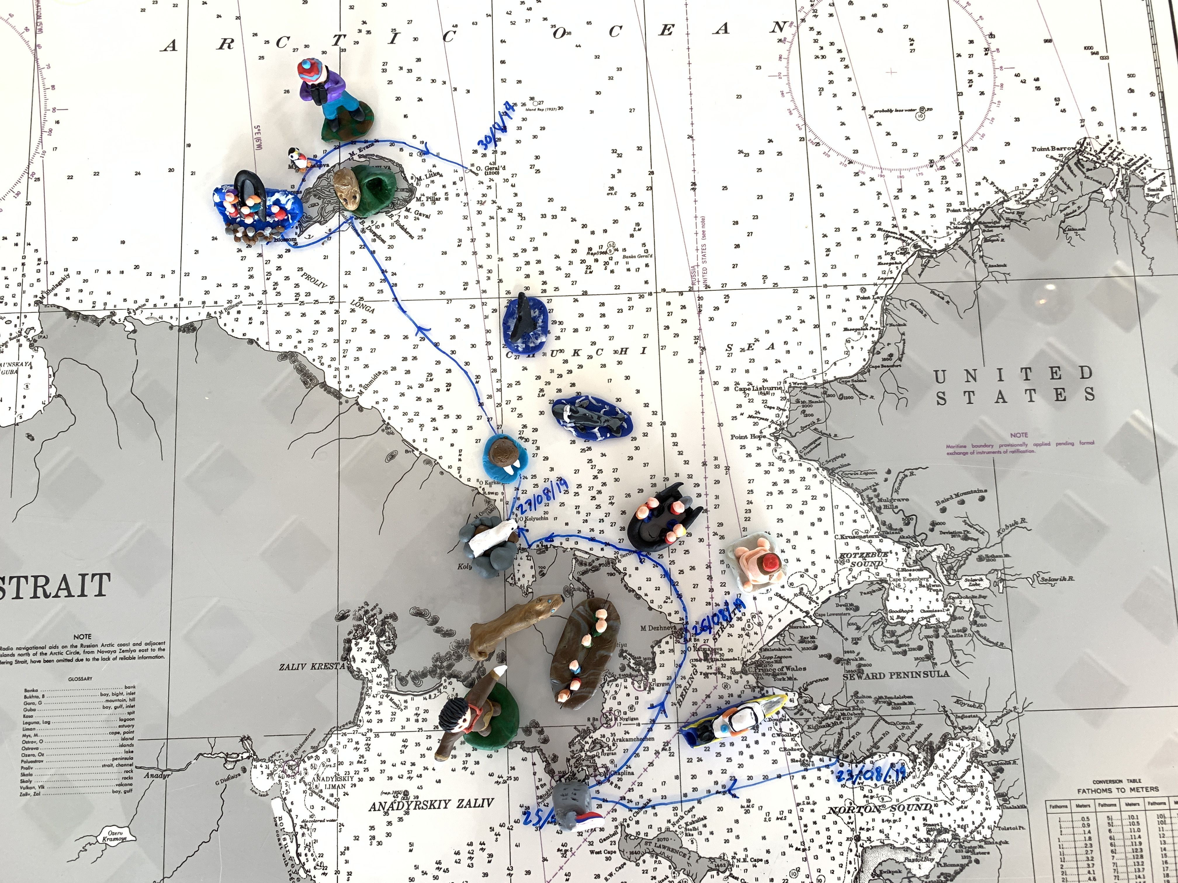 This is the last day of our expedition and a perfect time to remember all of the stops we’ve made along the way. One of our staff members, Peter Webster, has been memorializing through sculpture each activity on the chart in our Observation Lounge.