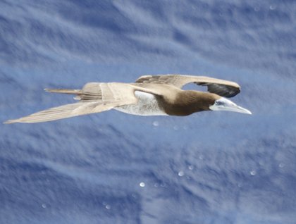 The day at sea was a great chance to watch for passing seabirds. Conditions were not ideal for viewing, as we were heading into a stiff south-east trade wind. But these same winds were powering the flight of a variety of seabirds that were observed from the decks during the day. Largest and most conspicuous were brown and red-footed boobies, and also lesser frigatebirds. Terns were well represented with sooty and white terns and both brown and black noddies.