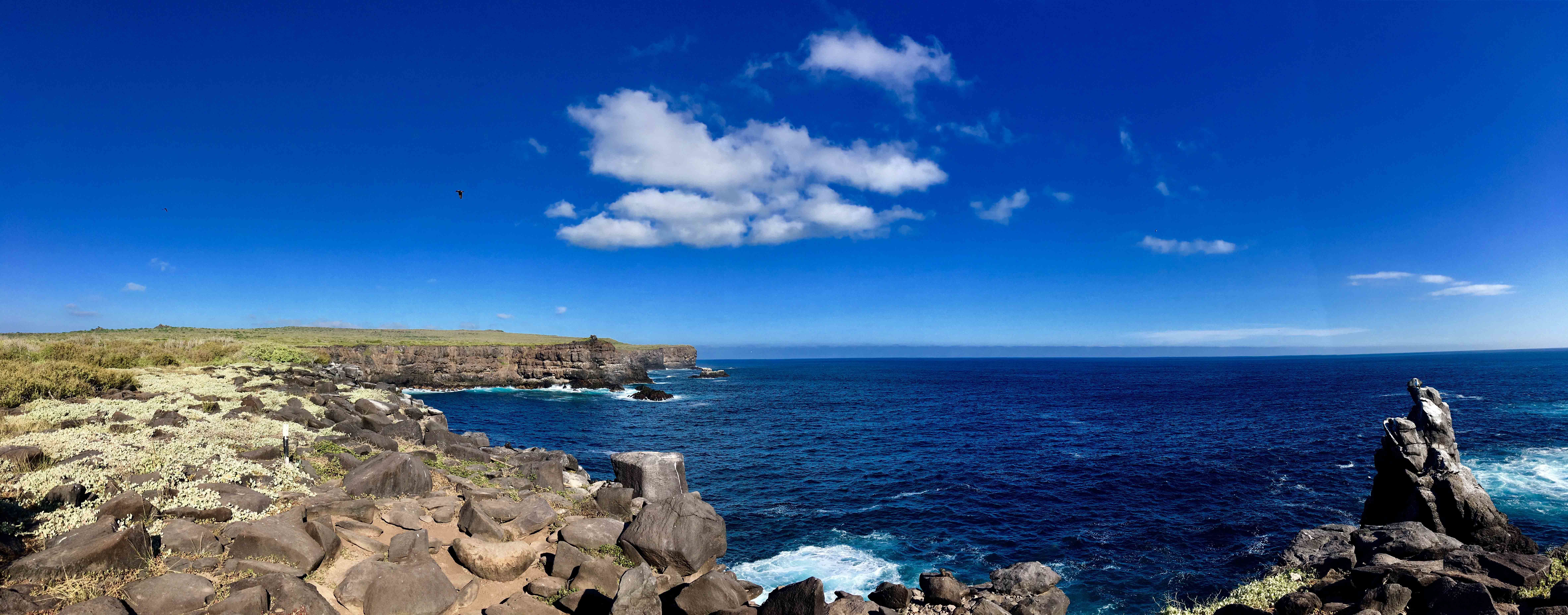 Today is the day that everyone dreads, the last sea day of the voyage as National Geographic Resolution powers her way towards the island of Rapanui. We experienced so many memories and powerful moments throughout this voyage. The early morning began with an art tour that highlighted the exhibits on the ship. Ably led by cultural specialist Jennifer Kingsley, guests were captivated by her interpretations of the art as she shared about the artists’ visions and ideas. National Geographic photographer Susan Seubert led a workshop on the workflow associated with digital photography. Afterwards, we began preparing for tonight’s slideshow by gathering the photos that will remind us of each day of this voyage. Mid-afternoon, expedition leader Alex Searle, an expert on Rapanui, began to prepare us for what awaits with a presentation about the island. Teatime was a special wine tasting event, and we ended the day with our Captain’s Farewell cocktail party. Captain Heidi Norling gave a heartfelt recap of the entire voyage, and we completed the day with an auction of some very special items. Kenneth Valdueza, a member of our deck team, illustrated a gorgeous chart of the region we have travelled. With fabulous, intricate pencil drawings, he brought the undersea world to life with representations of a blacktip reef shark, a spotted eagle ray, a sea turtle, and various creatures from the reef. Guests were blown away by his artwork, and two of our guests made a generous donation to the crew fund for the opportunity to take this beautiful artwork home with them. Cheers, everyone.