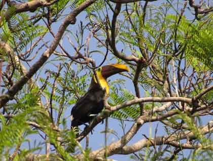 After breakfast was over, we started heading farther into Atun Poza, in order to find out what Mother Nature had in store for us.  Ringed kingfishers, red-capped cardinals, short-tail parrots, and black-collared hawks where spotted all over the place, making for a marvelous outing.  As we were preparing to head back to Delfin II, a troop of four monk-saki monkeys gave us a spectacular show as they jumped from one branch to the other.