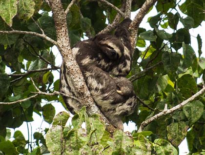 As usual, we encountered a variety of colorful birds, parrots, parakeets, kingfishers, caciques, a trogon, macaws, as well as some squirrel and monk saki monkeys. We also had another good look at a three-toed sloth sleeping in the canopy above our heads.