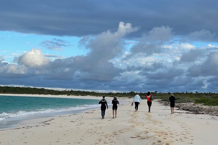 We had such a successful scouting experience on Conception Island yesterday that we decided there was too much to do in one day. The easiest solution was to spend two days here to fit everything in! We started today with an early riser beach walk for wildlife and bird sightings that departed for the beach as the sun made its way over the horizon. Those of us that are a bit more attached to our pillows in the morning departed for the beach later in the morning to join with the group and go for a long walk to the other side of the island. We crossed the plant-covered dunes and found ourselves on another stretch of white sandy beach with the wind blowing in our faces and waves crashing onto shore. As we made our way to the other end, we climbed up some beautiful bluffs to get a better look at all the patch reefs and the Atlantic Ocean stretching out endlessly to the east. We decided to adventure further along the bluffs, exploring the plethora of plants and flock of intrepid mockingbirds. When we eventually made our way back to our landing beach, the water was so crystal clear that none of us could resist a rewarding swim to cool off as we awaited our rides back to the ship. In the afternoon we returned to Conception Island one final time to continue our underwater exploration by snorkeling in another area of patch reefs.