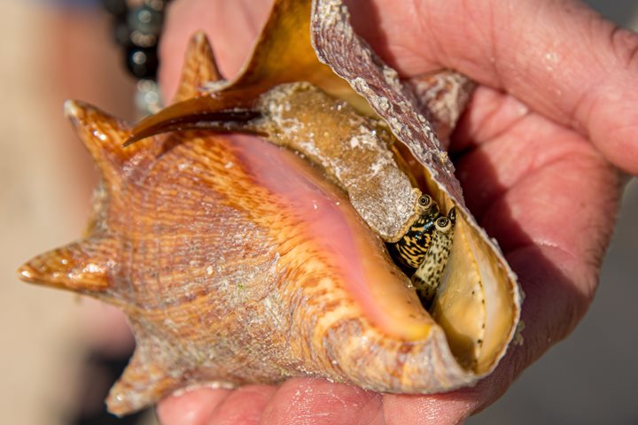 Heading toward a new addition to our Bahamas itinerary, we woke up this morning near Mayaguana, the easternmost island in the Bahama archipelago. Not very popular for tourism, Mayaguana remains one of the most pristine and untouched islands in the Bahamas. Because this was a new destination for us, our field staff team went out early to scout exciting areas for adventure. We drove all along the southwestern coast, stopping at several places that piqued our interest. On the eastern tip of Pirates Well, we saw a small flock of flamingos, about 30 birds, on the outer fringe of a mangrove creek. I had some expectations for spotting these birds here, as I have documented them in this same spot several times in the past. On our way back to National Geographic Sea Lion , we saw another small flock of birds flying toward the first group. We knew right away that the flock was getting larger. We wanted our guests to have the chance to see a flamboyance twice the size as the one we encountered yesterday. 45 minutes later, we were back in three Zodiacs with cameras, binoculars, and spotting scopes to get a closer, better look at the flamingos. We spent about 30 minutes with these birds before cruising along the sand flats closer to shore. As in many coves and flats in the Bahamas, the water level between high and low tide can determine whether you spend a few minutes in a spot and make it home, or end up deserted for several hours. After we spent enough time with the flamingos, we headed inshore to explore some of the coastal forests and mangrove creeks. On our way across the flats, we were surprised to see many different critters, including a huge southern stingray, green sea turtles, and many juvenile queen conchs. The queen conch is an iconic species in the Bahamas, so I took a moment to talk to guests about this important marine gastropod and its plight. We eventually made our way back to National Geographic Sea Lion for lunch, and we repositioned farther along the east coast toward a different spot. We spent the afternoon kayaking and paddling along the coast. We explored seagrass beds, patch reefs, and rocky, sandy shores in the area. We saw various species of fish, birds, and some sea turtles. We ended our day here and headed back to the ship. Our next stop tomorrow: Acklins Island.