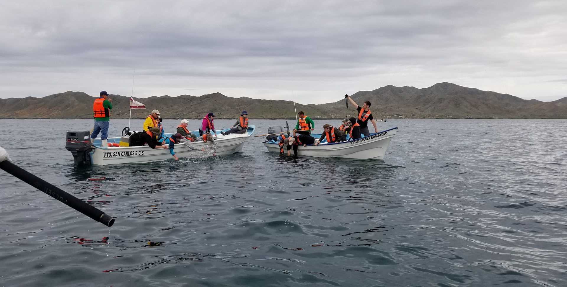 At the very end of our outing, we encountered a few friendly whales that approached our boats for some interspecific interaction. We were so excited to have the opportunity to actually touch a gray whale. Pretty much everyone who wanted to was able to feel the soft, rubbery skin of a whale and have a wonderful experience connecting with these beautiful animals. This was the perfect moment to end our time with the whales of Baja.