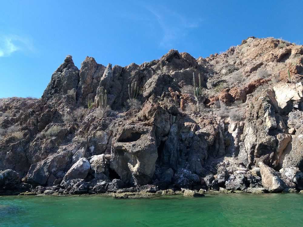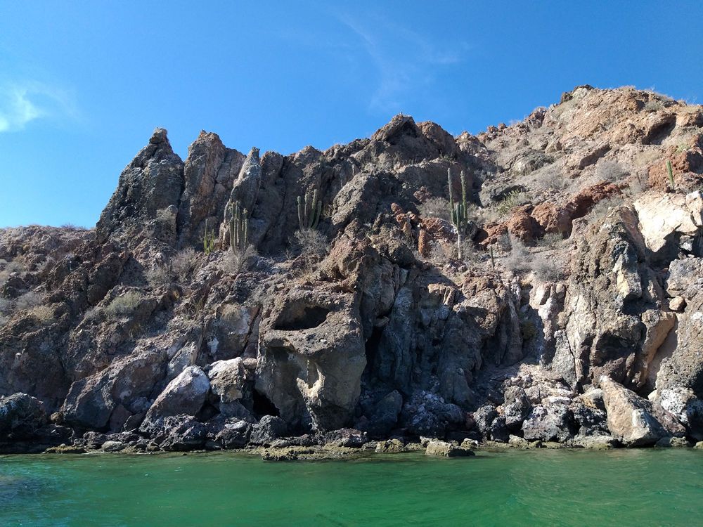 The vegetation of the island was no less interesting, having consisted heavily of organ pipe, galloping, and cardon cacti. The high cliffs demarcating the island were just gorgeous, seemingly immense against the set sky, fragmented and vivifying, all adorned in blooming and fruited cardon cacti.