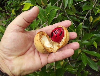 The first impression one gets of Banda Neira certainly does not portray the monumental importance this place holds in the history of the world. Unless one searches for it on a large-scaled map, it usually doesn’t even show up. Nevertheless, it is worthy of our attention and proved to be one of the highlights of the voyage. For more than three centuries this tiny island was the center of major contention between the native people of Banda and the Portuguese and the Dutch and the English. During that time, thousands of people were murdered, killed in military actions, and enslaved over the possession and harvest of a small endemic species of tree found only here in Banda. It is called the Myristica, or nutmeg, tree and its fruit produces what was once perhaps the most valuable spice in the world. Actually, the fruit produces two highly desired spices…nutmeg, from the nut itself, and mace, which is a fibrous, waxy, string-like wrapping on the surface of the nut. In order to appreciate the importance of these spices, one must understand that before the invention of refrigeration and proper canning technology, spices were of inestimable value in preserving and curing foods, especially meats. So, spices not only improved the taste of foods, they made them palatable by reducing microbial action that would have destroyed them during long-term storage. Some spices were also used medicinally and in religious ceremonies.
