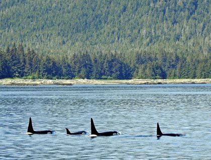 Late morning we weighed anchor and headed south into calm seas and sunshine glinting off snowy mountain peaks. Suddenly a large dorsal fin filled the lounge windows as a male killer whale cruised past National Geographic Sea Bird…! The dining room quickly emptied and we watched a group of whales making their way north. As our intended destination was to the south, after a bit we turned and continued on our way.