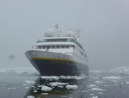 This morning everyone had a chance to sleep in which was surely much appreciated. At 7:30 a.m. our expedition leader Doug woke us up gently with an update on our progress. He mentioned that National Geographic Orion was travelling through thick fog, which had slowed us down. So instead of onshore activities this morning, we had a presentation and we would most likely do some kayaking and Zodiac cruising in the afternoon.