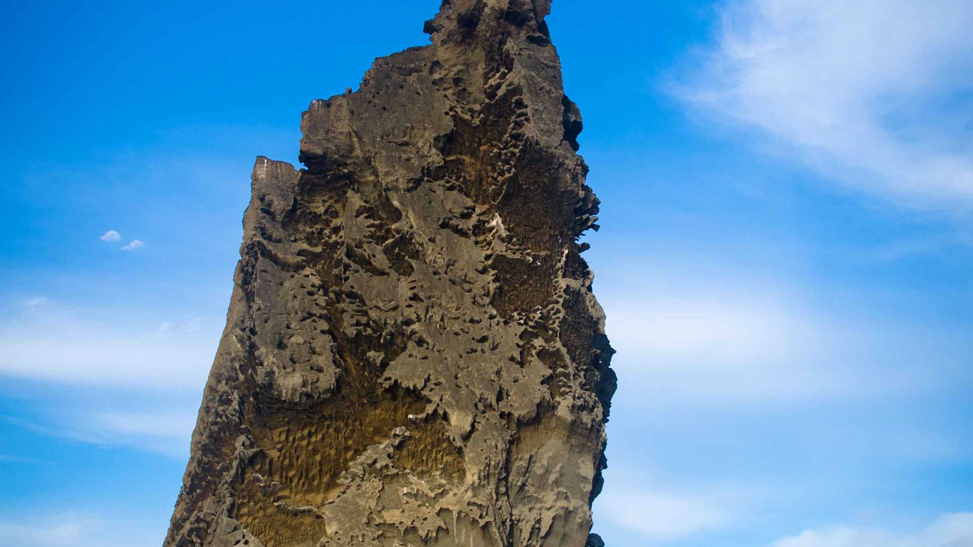 After a well-deserved opportunity for siesta we took to our Zodiacs once again to snorkel in the shallow sandy-bottomed channel that separates Santiago Island from Sombrero Chino Islet. The visibility was great and the waters teeming with life. White-tipped reef sharks and Galapagos penguins were spotted both swimming and diving around us and basking on the rocky shore.