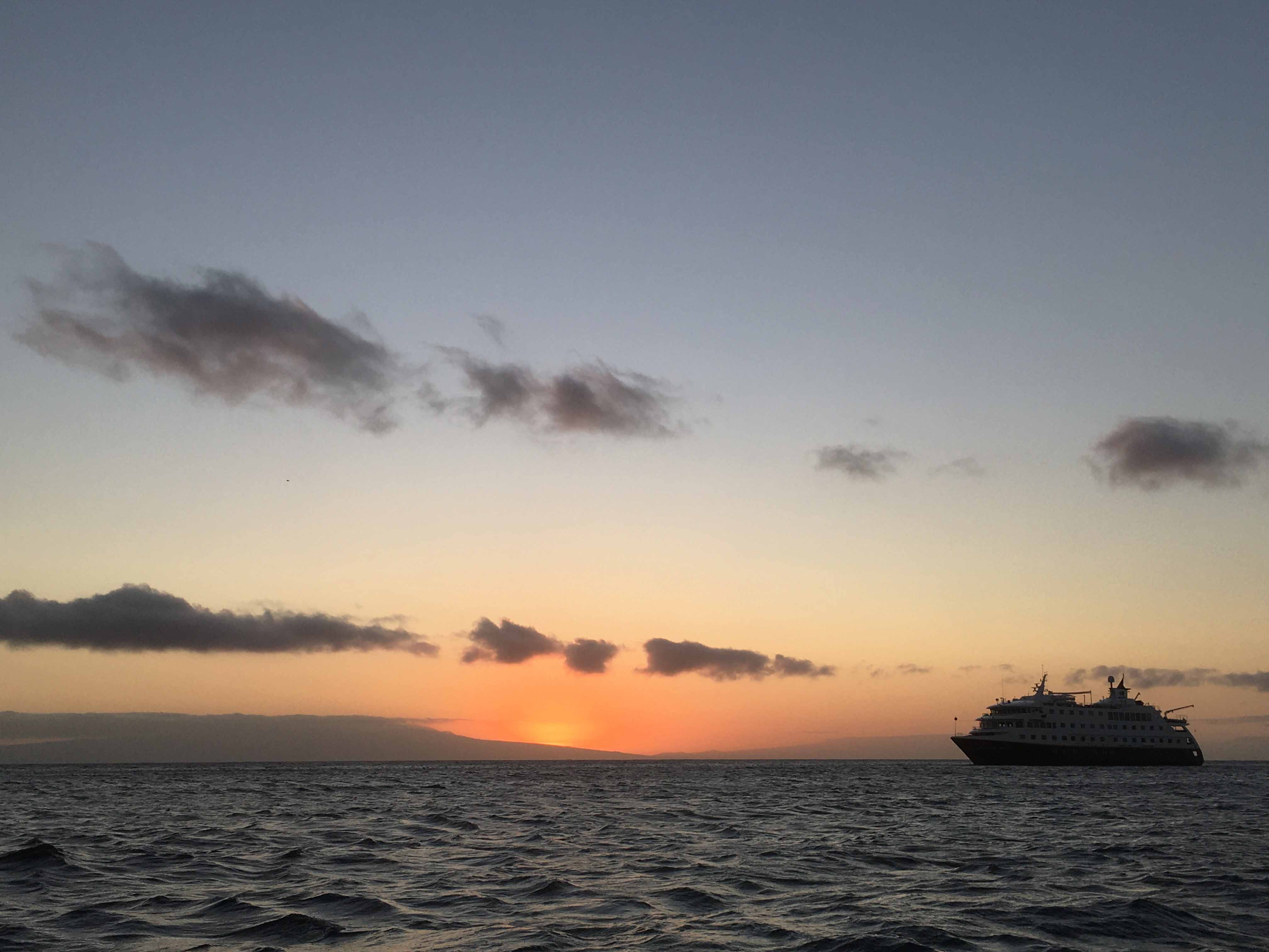 Today we woke up for an early pre-breakfast walk uphill to the top of Bartolome, a satellite islet of Santiago Island. This relatively new island is a good place to appreciate different geological formations such as tuff, spatter cones and basaltic flows. It was a pleasure for me to share my knowledge of geological formation of these islands with our local people. The presence of pioneer plants such as Tiquilia nesiotica and lava cactus makes Bartolome a good place to understand how life started in Galapagos after the first plants stablished on newly formed islands. We also had the chance to explore the underwater world of this place. Having fishermen from the community was an amazing experience as they started finding and pointing species of commercial interest, such as spiny lobsters and sea cucumbers. In the afternoon, we explored the island of Rabida, where one of the highlights were the flamingoes that we found in a lagoon, and sea lions resting at the beach during a beautiful sunset. We ended our day sharing “canelazos,” one of the main traditional drinks of Ecuador.