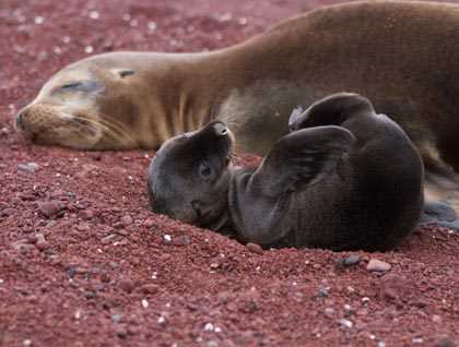 To take full advantage of our full day in this Archipelago, we disembarked on a beautiful, red sandy beach with Galapagos sea lions resting, nursing and playing among themselves.