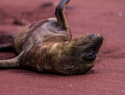 In the afternoon, we traveled on to explore one of the jewels of the crown, Rabida Island. Our first activity at this marvelous site was deep water snorkeling. Sightings of blacktip cardinalfish, pacific green sea turtles, and feeding marine iguanas made this an exciting underwater adventure. The final activity of the day was a walk along the shoreline of a marvelous red sand beach, which was naturally decorated by green saltbushes. The presence of a Galapagos hawk, and Galapagos mockingbirds made for an excellent photo opportunity. Finally, the sun setting behind the horizon was the indicator that our journey continues tomorrow at the living paradise of the Galapagos Islands.