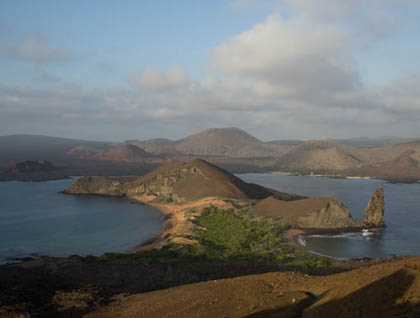 During the morning we visited an island called Bartolome. Early in the morning we visited a path made by the National Park some years ago. This island was formed in the middle of the ocean by explosive eruptions that started underwater and eventually they accumulated enough material to bring molten material to the surface. Lava tunnels, spatter cones, cinder cones, and tuff cones are what make Bartolome and is what we saw during the hike to the summit of the ancient volcanoes. Then we came back on board to change, eat breakfast, and went out to visit a beach nearby.  Here our guests practiced snorkelling and so later they ventured further and deeper to see a greater variety of fish.