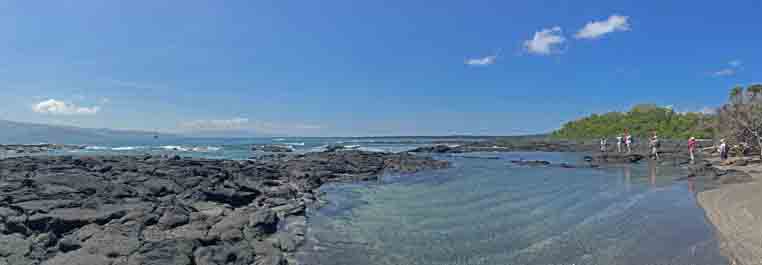 Pioneer plants such as tiquilia and lava cactus were a natural decoration on the lava rocks.  The splendor of the place was found once we reached the highest point of the trail.  There were dozens of spatter cones on one side of the Island contrasted with the deep blue sea on the other side and at the center of this the impressive pinnacle rock with the isthmus of Bartolome was awe-inspiring.