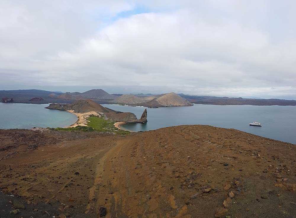 It was a fantastic morning to spend on Bartolomé Island. We visited this small island that has an amazing landscape. We went for an exploratory walk along the trail that led us to the top. It was fascinating to encounter small volcanos dotting the landscape. As we walked we also climbed the slopes of this island all the way to the outlook. There we had the most amazing views of the volcanic landscape.