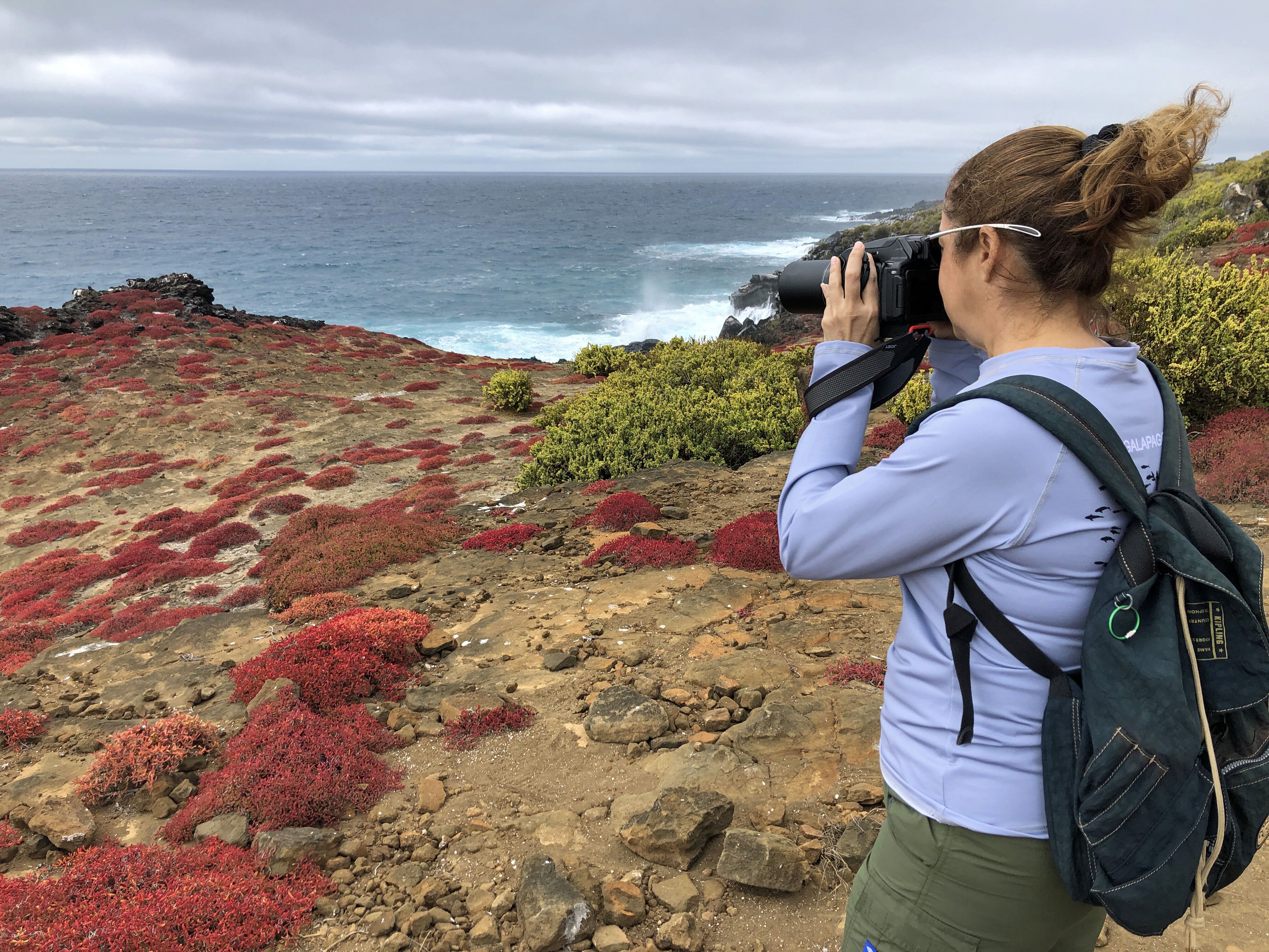 We woke up to super calm waters off the northern coastline of Floreana Island. Perfect conditions for a bit of kayaking among the offshore islets near Post Office Bay! Brown pelicans, egrets, green sea turtles, and red, black, and white mangroves…a peaceful environment for an hour or so before breakfast. Some guests went straight to the beach to walk a few yards through saltbushes and found themselves facing the famous “barrel” of Post Office Bay. It’s been over a century since the barrel was first placed here for use by whalers to exchange correspondence and carry back letters of business, or perhaps letters to loved ones. Today, postcards fill the barrel, but the turnover is fast. Each day, some of the postcards are taken for delivery while others are left behind in hopes that someone will continue the tradition and hand-deliver them in the weeks to come. Between breakfast and lunch, we played in or on the water around Champion Islet, just to the northeast of Floreana Island. We didn’t make a landing but explored by Zodiac, including a birdwatching circumnavigation followed by deep-water snorkeling in incredible waters with parrotfish, angelfish, pufferfish, damselfish…all kinds of fish! Sea lions buzzed by, desperate to draw attention and get a reaction out of us, which they did. Squeals and shrieks were heard. After an instructional briefing on iPhone photography and a presentation on Charles Darwin in the afternoon, we went ashore on the main island of Floreana. There has been quite a drought this year and not much rain the previous year either. The land was dry, the vegetation was brittle, and dead leaves were everywhere. But all that is fine for the native and endemic species; after all, they’ve been through this before, over the millennia, and survived. The stress is on the introduced species who depend on higher amounts of freshwater for survival. While their defenses are down and populations are stressed, now is the time to really push for programs to eradicate introduced species. Floreana Island is ready for restoration. The National Park and collaborating NGOs are preparing Floreana to receive native species that were once thought doomed for extinction. Giant tortoises, Floreana mockingbirds, and racer snakes may yet survive and prosper with the help of these organizations. We spent the afternoon following an easy trail from a dark-colored beach of mineral origin and over the isthmus to a white, organic beach where green sea turtles were riding the breakers offshore. The turtles are not quite ready to come ashore and lay eggs, as temperatures are still too low for another month or so. But a great blue heron and frigatebird were checking out the scene, just in case someone tried for an early nesting. It will be a couple months before hatchlings try to race to the ocean in the dark of night. We returned to our base of operations as the sun set low on the horizon. National Geographic Islander II was waiting for us with hot water and the comforts of home.