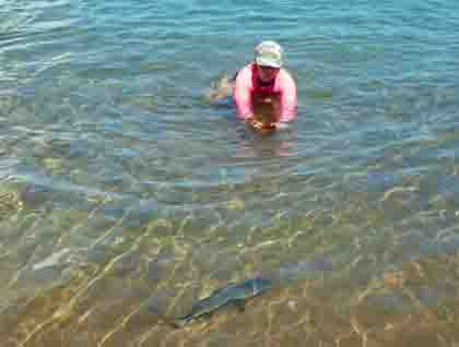 Some of our explorers spent the rest of the morning snorkeling, while others decided to relax on the majestic golden beach of Bartolomé. For those who stayed at the beach, several blue-footed boobies and curious lava lizards came around to provide entertainment. For those who decided to refresh on the clear blue waters of this majestic island, their reward was an incredible sighting of a baby black-tipped reef shark which was swimming close to the shore and stayed with us for long time. This inspirational contact with so many animals reminded us that the Galapagos is such a special place, where humans can have a unique interaction with nature. We came back for lunch, welcomed by our fabulous cooking team who delighted us with a variety of fabulous dishes, including paella!