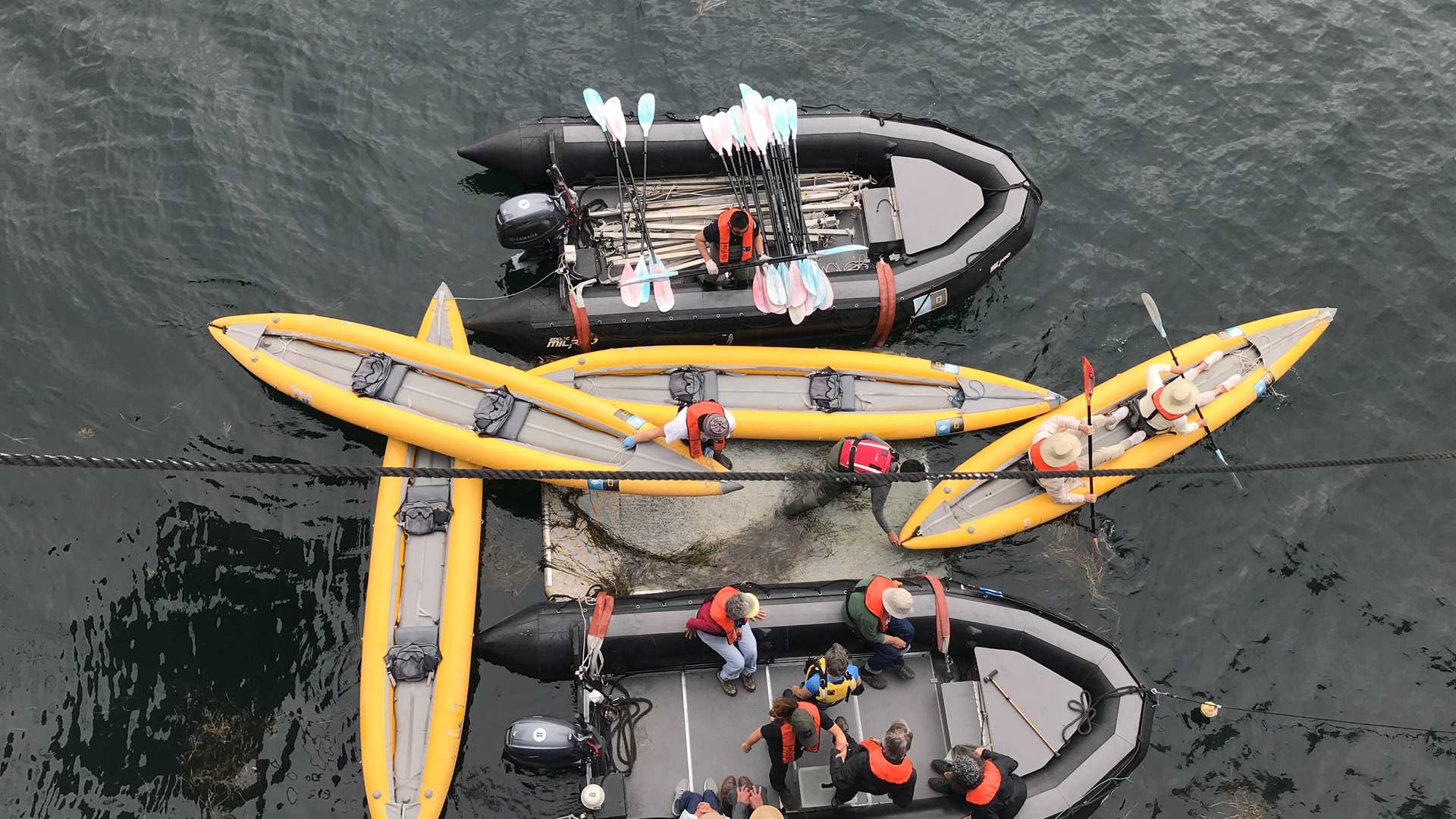 After lunch, the conditions were ideal for exploring the area by Zodiac and by kayak. We were delighted with excellent views of an adult bald eagle sitting in a tree, unperturbed by its admirers. We also observed a pair of belted kingfishers cruising along the shore in search of food, and afterwards we enjoyed the treat of a special ‘tea’ on the sun deck with hot dogs and beer.